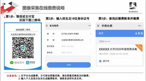 2.缴费标准:图像信息集中采集收费标准每人17元,直接交给拍照单位大连简文教育科技有限公司。