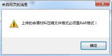 (2) 下图提示表示上传的文件不为.rar的压缩文件,请检查压缩文件属性确定为.rar压缩文件后再上传。