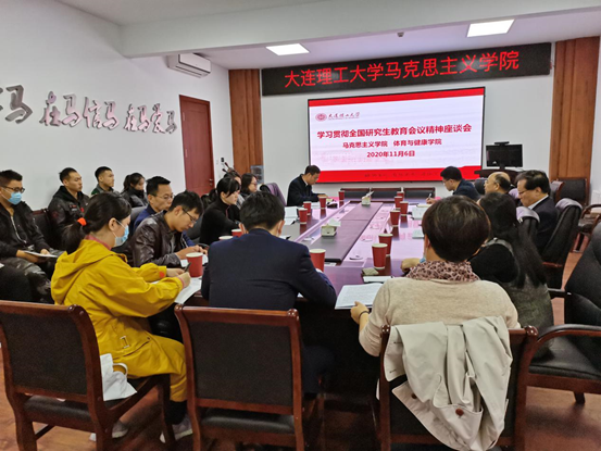 为贯彻落实全国研究生教育会议精神,深入学习习近平总书记关于研究生教育的重要指示精神,进一步优化研究生教育和提升研究生培养质量,11月6日上午,马克思主义学院同体育与健康学院召开了学习贯彻全国研究生教育会议精神座谈会,本次座谈会由马克思主义学院院长洪晓楠主持,校党委副书记、副校长宋丹教授、马克思主义学院马克思主义基本原理学科群教师、体育与健康学院教师代表、研究生代表等参加了本次座谈会。