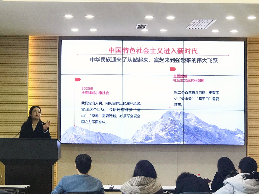 方玉梅以《新时代高校思政课育人的目标使命与实践探索》为题,凭借其深厚的理论基础和文化底蕴,为在座教师详细讲解了中国特色社会主义进入新时代的时代背景和新时代高校思政课育人的目标使命,并从95后硕士研究生的特点与思政课教学的特点出发,以《中国特色社会主义理论与实践研究》课程为例,提出了自己在“坚持问题导向”、“立足大视域”、“重视学生自我教育”、“适应新媒体技术时代” 等方面实现新时代高校思政课育人的实践与探索,她呼吁教师们要因时而进,用新媒体技术激活理论魅力。
