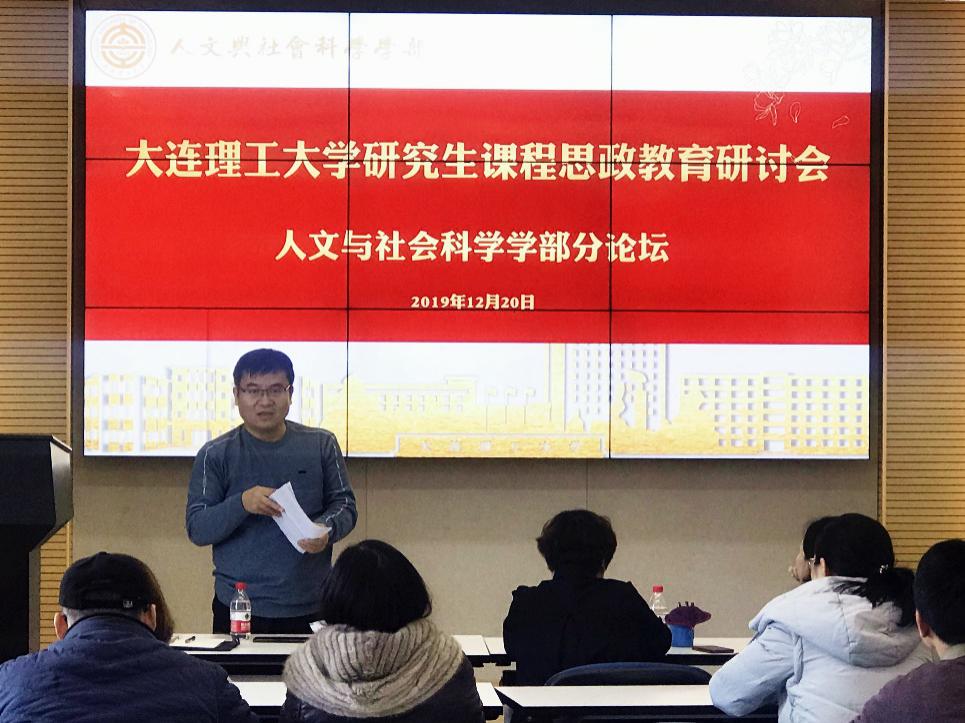 为贯彻落实全国高校思想政治工作会议精神和中共中央国务院《关于加强和改进新形势下高校思想政治工作的意见》精神,深入挖掘研究生专业课程的思政功能,使专业课与思想政治理论课同向同行,形成育人协同效应。12月20日下午,大连理工大学研究生课程思政教育研讨会人文与社会科学学部分论坛在文科楼610会议室举行。论坛由人文学部部长李伦教授主持,校研究生课程思政示范课负责人——外国语学院王慧莉教授、马克思主义学院方玉梅副教授、人文与社会科学学部武文颖教授做主题报告。