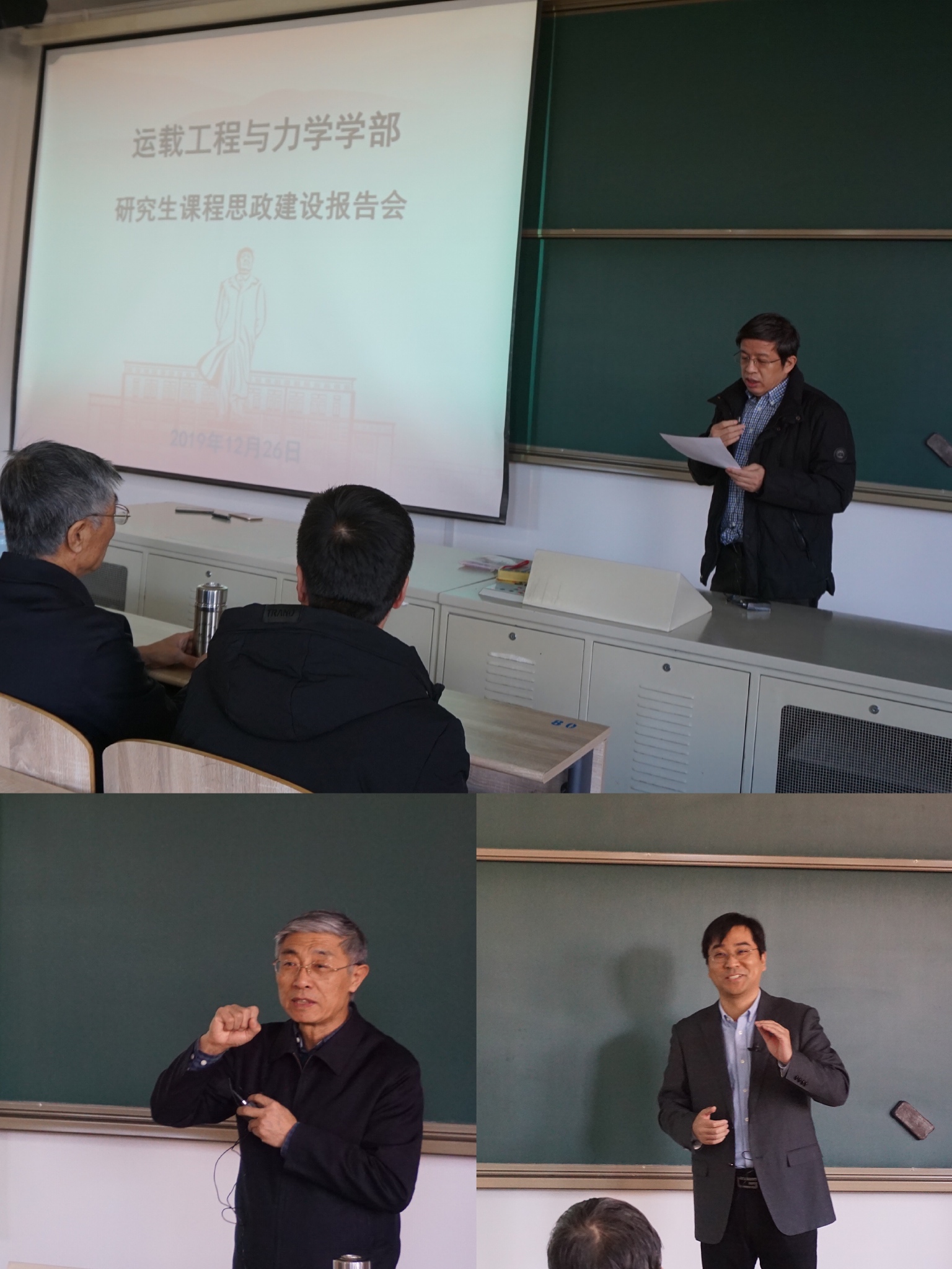 2019年12月26日,运载工程与力学学部研究生课程思政教育报告会在建筑馆205教室顺利召开。运载学部研究生导师和研究生课程任课教师共100多人参加报告会,会议由运载工程与力学学部部长李刚教授主持。