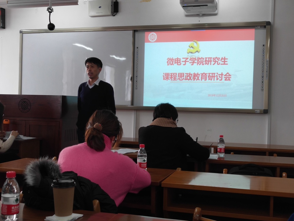 为贯彻落实习近平新时代中国特色社会主义思想和党的十九大精神,贯彻落实全国高校思想政治工作会议精神和中共中央国务院《关于加强和改进新形势下高校思想政治工作的意见》精神,深化我校“三全育人”综合改革,深入挖掘学院研究生专业课程的思想政治教育功能,使专业课程和思想政治教育课程同向同行,形成协同育人效应,12月25日下午,微电子学院在研教楼510室举行了研究生课程思政教育研讨会。会议由学院主管研究生工作的副院长常玉春教授主持。