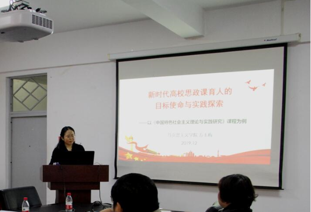 方玉梅副教授首先做了主题为《新时代高校思政课育人的目标使命与实践探索》的报告。方教授从新时代高校思政课育人的时代背景、目标使命、实践与探索三方面阐释了“立德”与“树人”的重要意义,并结合当前95后研究生的特点及思政课面临的挑战,举例介绍了实现新时代高校思政课育人的实践与探索。