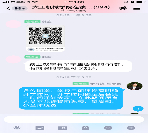 在研究生指导方面,学院进一步强化导师的第一责任人意识,要求导师在疫情防控期间,密切联系所有研究生,了解学生关心的问题,指导研究生完成好课程学习、科研、学位答辩等任务。