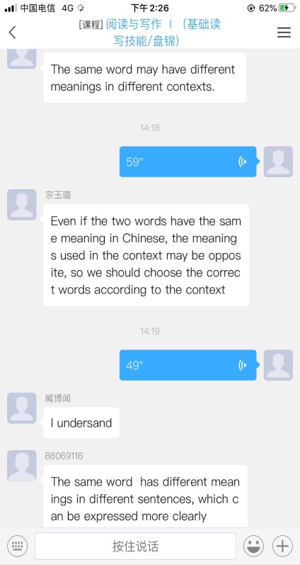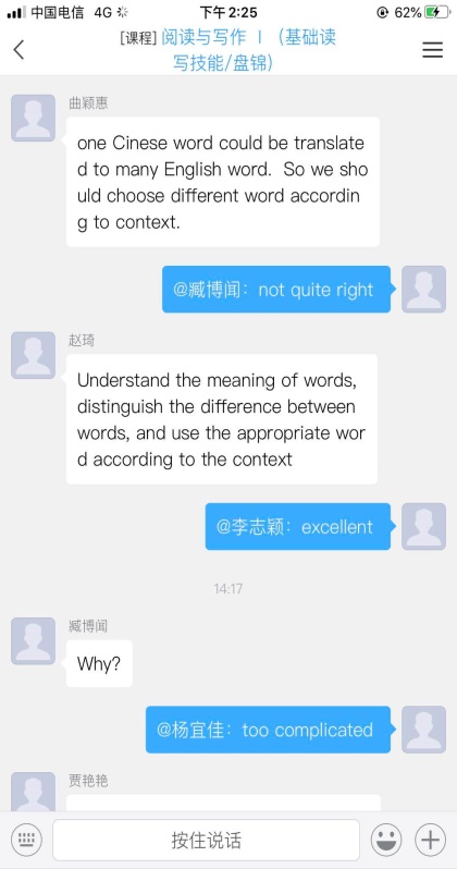 在接到线上教学任务通知的第一天,任课教师放弃寒假和休息时间制作网络课件,部分教师甚至将声音逐条录制到ppt的每个知识点中,将课程内容尽可能地细化,主动延长在线教学学时,就怕学生不适应网络授课、影响教学效果,同时利用qq、微信等聊天软件进行即时在线答疑和互动,了解学生在线学习情况。部分学生反映PPT录播的形式效果更好,跟不上的知识点可以反复听反复学。部分教师反映:隔着屏幕,学生更愿意交流、主动提出问题,互动多、讨论深入,但对老师提出了更高质量的授课要求,需要准备更多的教学资料,备课工作量较大。尤其是老教师,网络教学平台对他们而言太陌生了,需要一点一点慢慢摸索学习,同学们课上的两个学时是老师们背后更多的付出!