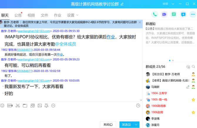 2月24日,软件学院2020年春季学期“线上课堂”如期开课,9门课程的教学资源全部上线,为学院全体研究生送上了一份特殊时期的定制作品。开课首日,教师们全情投入,学生们积极参与,师生互动顺畅,共同克服了网络拥堵等困难。教师们灵活运用多种教学平台和手段,以分散教学、分段学习、任务驱动、项目引导、创新设计等创新教学形式,实现了“停课不停学,在线也高效”的教学目标。此外,研究生培养办也提前加入在线教学课程群组,参与在线教学活动,对在线教学质量进行全面把控,为在线教学保驾护航,从而促进在线学习与线下课堂教学质量的实质等效。
