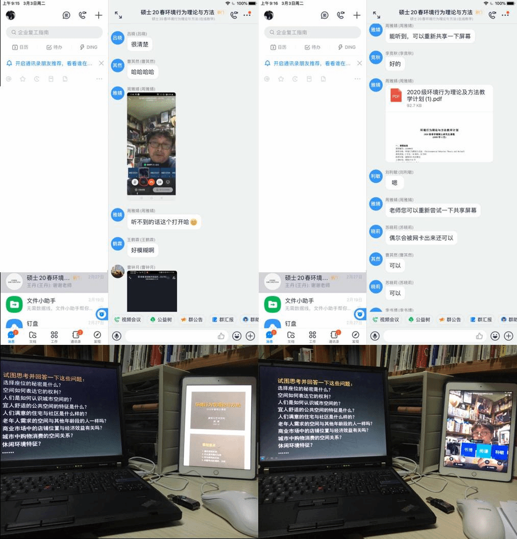 线上培养模式对于师生而言都是全新体验。直播授课拉近了师生间的距离,线上所会加强了师生间的沟通,教师与学生之间产生了良好的化学反应,交流更加自如,学生反响强烈。学院研究生张春阳同学分享自己上课心得:“这种全新的授课方式,让我们与老师之间有了一种全新的互动方式使得。一些课程也让我们在疫情期间对自己的专业有了新的思考。如城市健康社区规划理论与方法,保障市民的健康需要包括城市规划部门在内的多部门的通力合作,市民们自下而上的参与,采用综合性、系统性的干预措施等,这门课让我产生了强烈的专业认同感。”学院研究生张婧琪同学表示:“我认为线上授课这种模式能够培养我们研究生自主学习的能力,为日后的学术研究奠定良好基础。” 博士生邱煜焜同学表示:“线上所会气氛相对活跃轻松,从所会中感受到了科研的压力和动力,更感受到来自导师的温暖关怀。”疫情阻挡了归校的脚步,却阻隔不了学生们对知识的渴望,激发了学生们对科研学习的热情。