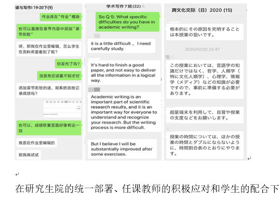 按照学校《2020年春季学期研究生在线教学与学位管理组织实施方案》的工作要求,外国语学院师生全面响应、合力应对,采取了一系列措施保障全校研究生公共外语教学、以及外国语学院外国语言文学专业硕士研究生在线教学工作的顺利推进。