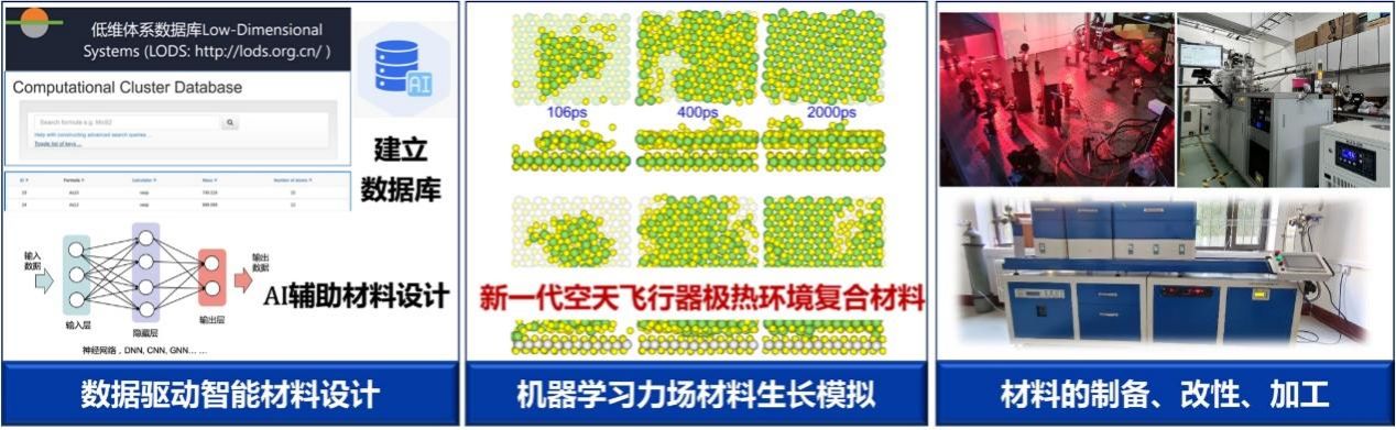 目前已经建立二维材料和团簇数据库LODS;发展了REALs 机器学习力场 (可比DFT精度、百万原子规模);完成了包括MoS2/WS2异质结生长模拟、碳纳米管内MoS2生长模拟、多壁碳纳米管内SnS2纳米管可控合成模拟等多个工作。