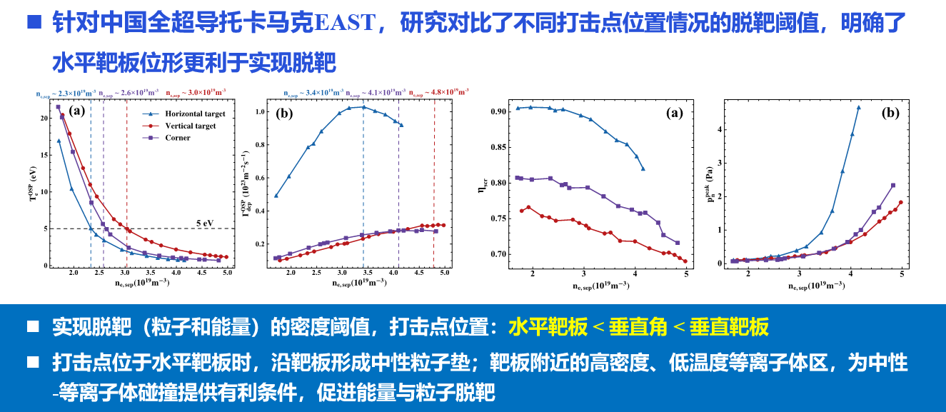① DSOL:打击点位置对偏滤器等离子体脱靶的影响[Y. L. Wang, C. F. Sang* et al., Nucl. Fusion 65 (2025)116018]: