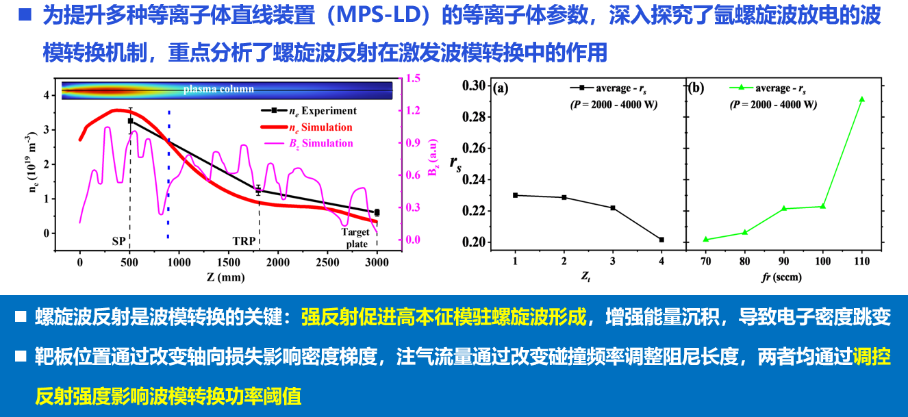 ④LPD:多种等离子体直线装置 MPS-LD 中氩螺旋波放电的波模转换机制研究[J.T. Wu, C.F. Sang* et al., Plasma Sources Sci. Technol. 34(2025) 105024]:
