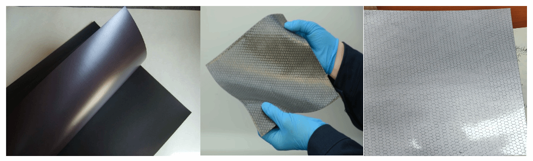(2)高磁通柔性电磁兼容贴片:主要聚焦电器、电子产品、通讯设备的微型化和高度集成化带来的电磁兼容问题开发高磁通柔性超薄磁性贴片。具体从贴片内部粉体的有序化及磁晶各向异性、晶间磁耦合设计制备,实现超薄特征下的高磁通特性。应用于电磁兼容、射频识别系统的信息读取等领域。