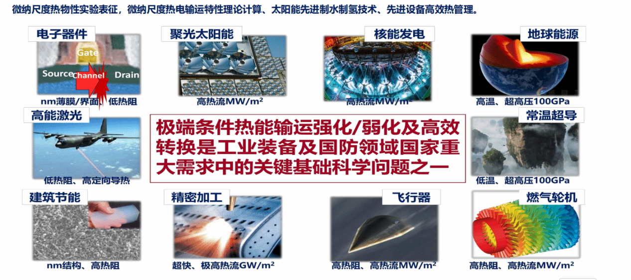 极端条件热物理及热输运过程、高热流密度传热及热管理技术、聚光太阳能热利用-制氢/蒸发、高效热管理系统开发、先进能源转换和制氢、微纳尺度热电输运模拟计算、材料热物性实验研究。