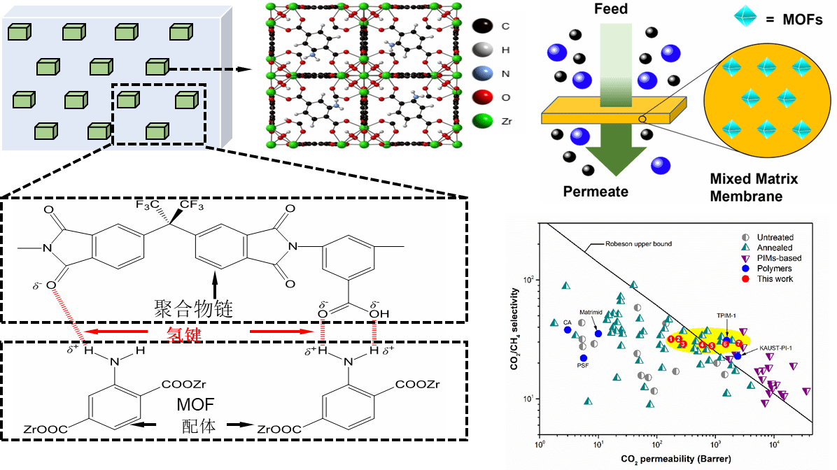 膜材料功能化设计与合成:聚酰亚胺,有机微孔聚合物(自具微孔聚合物、热重排聚合物等),炭分子筛,金属有机骨架材料(MOFs)等;
