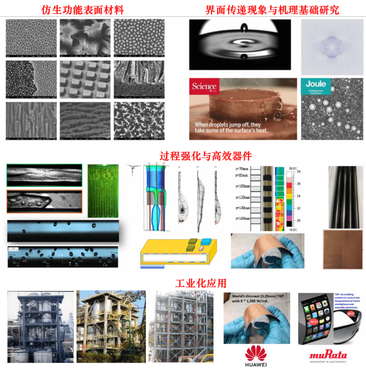 功能热界面材料、高效换热技术、高性能芯片热管理、MED海水淡化、氢燃料电池、数据中心液冷、高速飞行器冷却、微化工与智能化工、工业余热利用