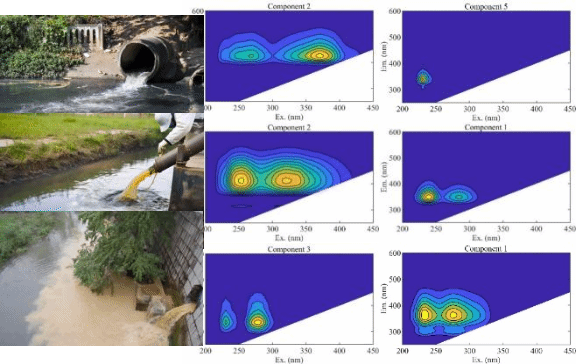 3.为解决传统水质检测无法溯源问题,开展水质荧光指纹溯源技术开发,研制完成移动式和在线水质污染溯源仪,可准确溯源追责,及时切断污染源。目前已应用于工业园区污水处理厂、城镇污水处理厂和河流断面,用于污染预警溯源。