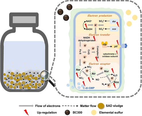 2.开发低碳自养生物脱氮新技术,利用宏基因组结合转录组、代谢组解析分子机制。所开发硫自养生物移动床技术完成150m3/d生产性实验,运行成本降低1/3。