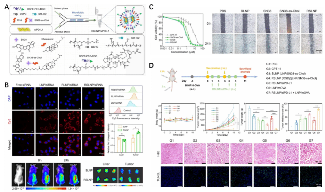 图3. RSLNP/siPD-L1与mRNA疫苗联合治疗黑色素瘤的抑瘤效果。