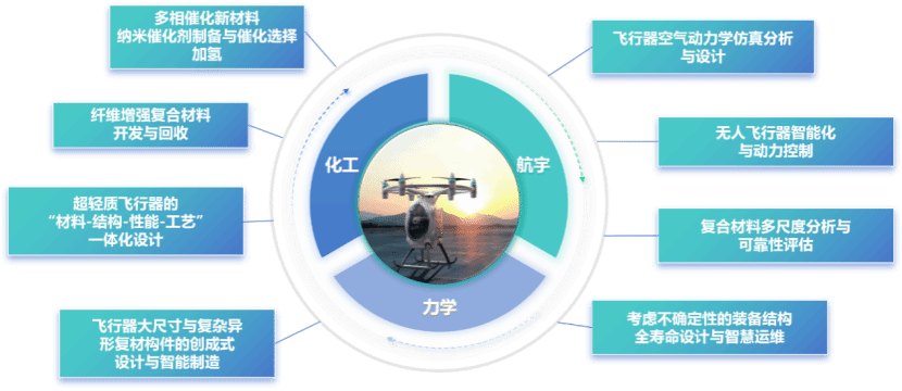 低空飞行器结构数智设计与成型学科交叉团队整合我校在力学、航空、化工高分子材料领域的优质优势资源,依托工业装备结构分析优化与CAE软件全国重点实验室、精细化工全国重点实验室和教育部先进材料数智设计与成型创新支撑中心,重点针对我国当前的低空飞行器设计与成型技术人才供需不匹配问题,培养该领域的高素质复合型人才。
