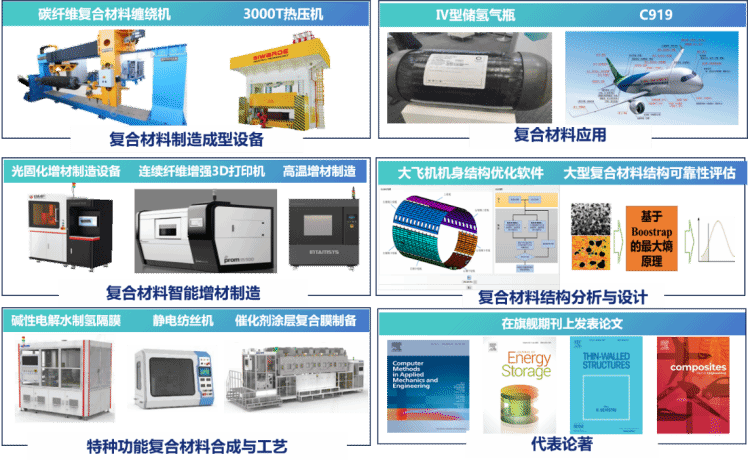 团队围绕复合材料先进制造中的关键力学问题,打造大尺寸、高精度复合材料构件的低成本一体化成型制备平台,开发先进成型工艺和智能化装备,建设自主知识产权工艺控制算法和系统。建立了大型复合材料构件承载性能评估的多尺度有限元方法,准确分析承载性能可靠性及制造损伤敏感性,应用于C919垂尾翼盒的承载性能分析,助力国产大飞机C919首飞成功。与商飞达成合作协议,针对CR929复材后机身进行承载性能分析,并通过元件库离散优化、二次参数优化等技术手段,实现大飞机机身结构优化模块开发,解决机身结构轻量化问题。